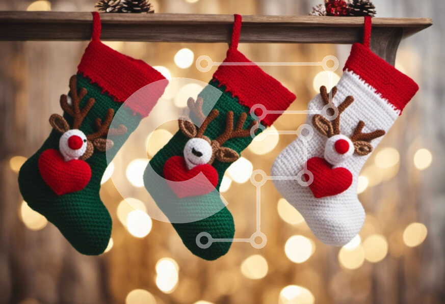 Intra Συλλεκτικό Ξύλινο Παζλ Plywood 4mm - Χριστουγεννιάτικες κάλτσες σε ξύλινο ράφι με καρδιές ταράνδου Σε Ξύλινο Κουτί - Διαστάσεις: 10x10 cm – 25 κομμάτια