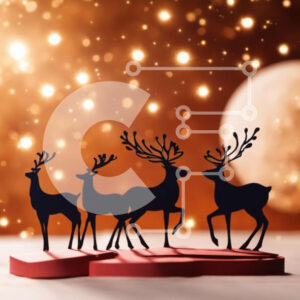 Intra Συλλεκτικό Ξύλινο Παζλ Plywood 4mm - Χριστουγεννιάτικες σιλουέτες ελαφιών σε κόκκινο φόντο Σε Ξύλινο Κουτί - Διαστάσεις: 10x10 cm – 25 κομμάτια