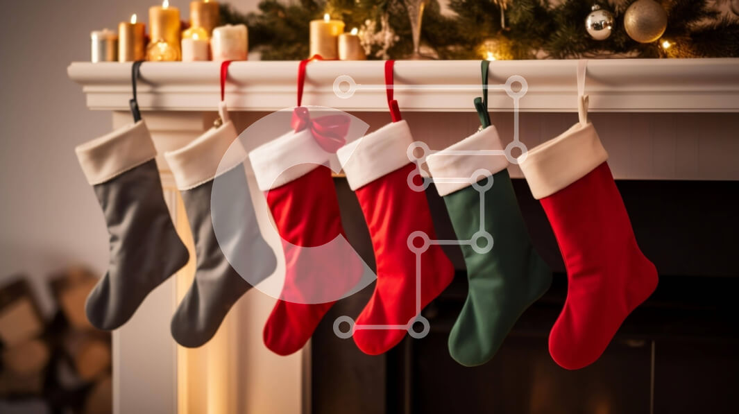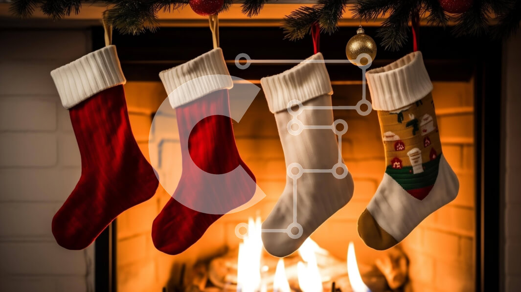Intra Συλλεκτικό Ξύλινο Παζλ Plywood 4mm - Χριστουγεννιάτικες γιορτινές κάλτσες που κρέμονται από το τζάκι Σε Ξύλινο Κουτί - Διαστάσεις: 10x10 cm – 25 κομμάτια