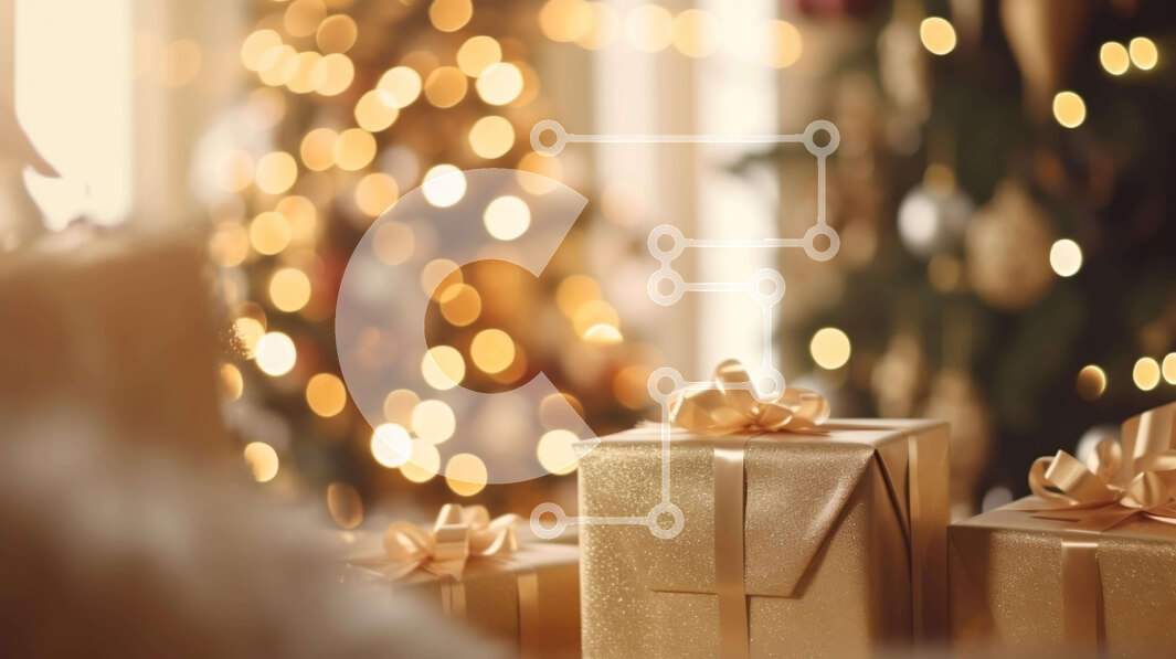 Intra Συλλεκτικό Ξύλινο Παζλ Plywood 4mm - Χρυσά κουτιά δώρων με φόντο το χριστουγεννιάτικο δέντρο Σε Ξύλινο Κουτί - Διαστάσεις: 10x10 cm – 25 κομμάτια
