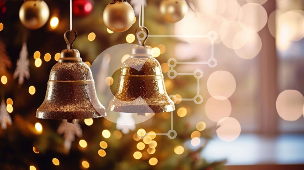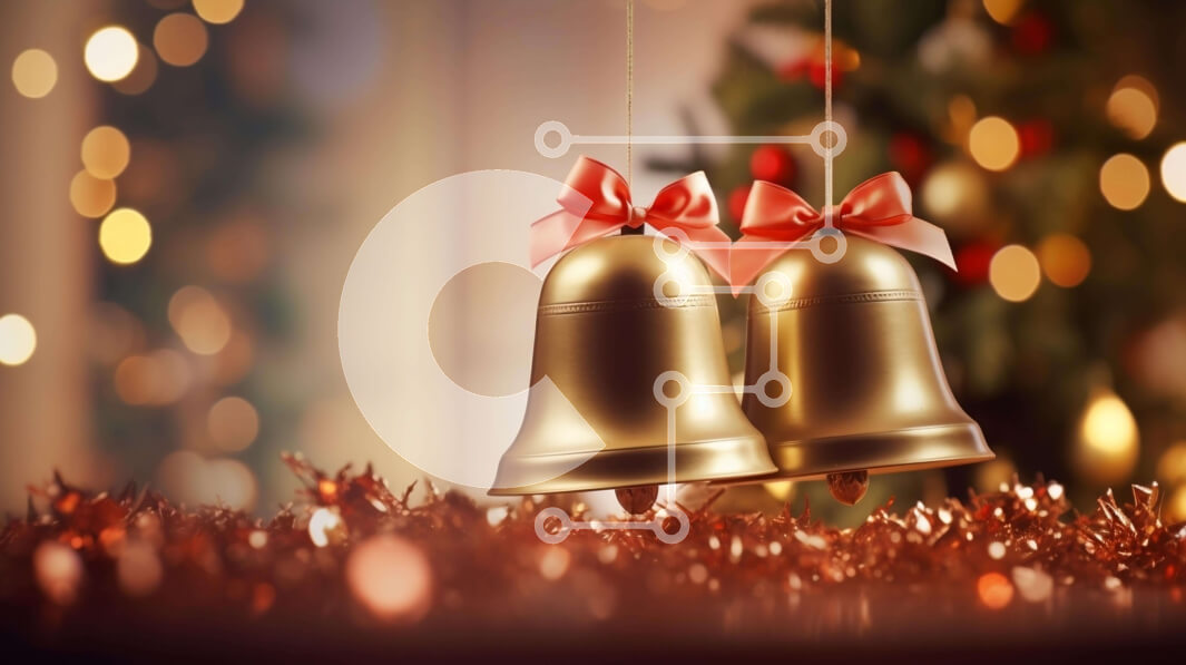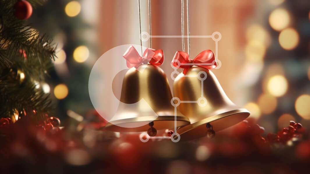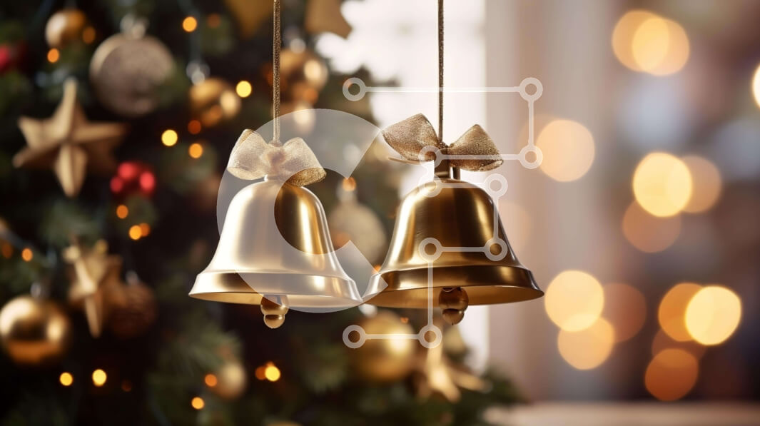 Intra Συλλεκτικό Ξύλινο Παζλ Plywood 4mm - Χρυσές καμπάνες που κρέμονται μπροστά από το χριστουγεννιάτικο δέντρο Σε Ξύλινο Κουτί - Διαστάσεις: 10x10 cm – 25 κομμάτια