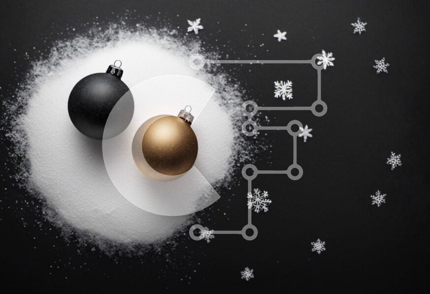 Intra Συλλεκτικό Ξύλινο Παζλ Plywood 4mm - Χρυσές και μαύρες χριστουγεννιάτικες μπάλες με νιφάδες χιονιού σε μαύρο φόντο Σε Ξύλινο Κουτί - Διαστάσεις: 10x10 cm – 25 κομμάτια