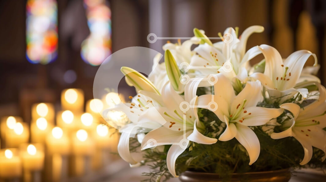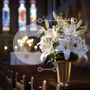 Intra Συλλεκτικό Ξύλινο Παζλ Plywood 4mm - Χρυσό βάζο με λευκούς κρίνους και αναμμένα κεριά στην εκκλησία Σε Ξύλινο Κουτί - Διαστάσεις Puzzle: 10x10 cm – 25 κομμάτια