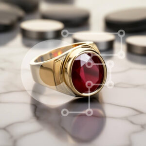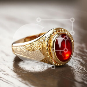 Intra Συλλεκτικό Ξύλινο Παζλ Plywood 4mm - Χρυσό δαχτυλίδι με κόκκινο πολύτιμο λίθο σε ξύλινη επιφάνεια Σε Ξύλινο Κουτί - Διαστάσεις: 10x10 cm – 25 κομμάτια