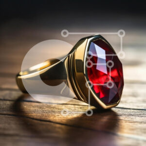 Intra Συλλεκτικό Ξύλινο Παζλ Plywood 4mm - Χρυσό δαχτυλίδι με κόκκινο πολύτιμο λίθο σε ξύλινη επιφάνεια Σε Ξύλινο Κουτί - Διαστάσεις: 10x10 cm – 25 κομμάτια