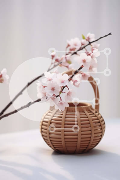 Intra Συλλεκτικό Ξύλινο Παζλ Plywood 4mm - Ψάθινο καλάθι με ροζ άνθη στο κλαδί Σε Ξύλινο Κουτί - Διαστάσεις: 10x10 cm – 25 κομμάτια