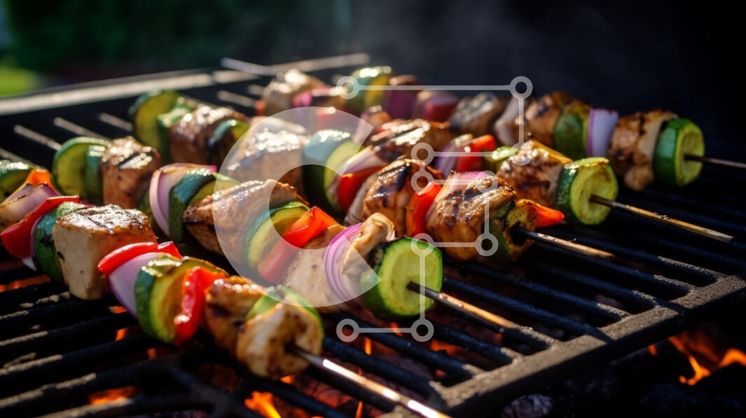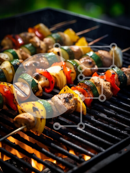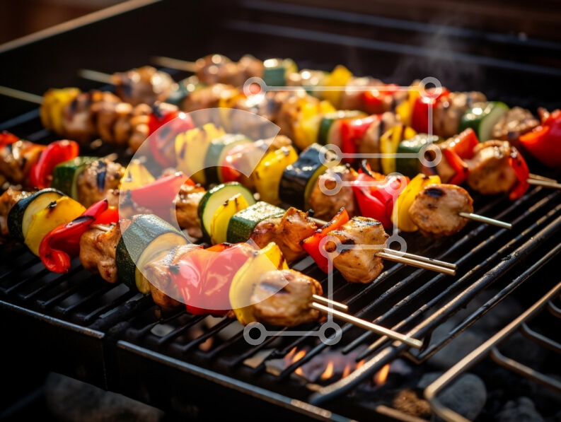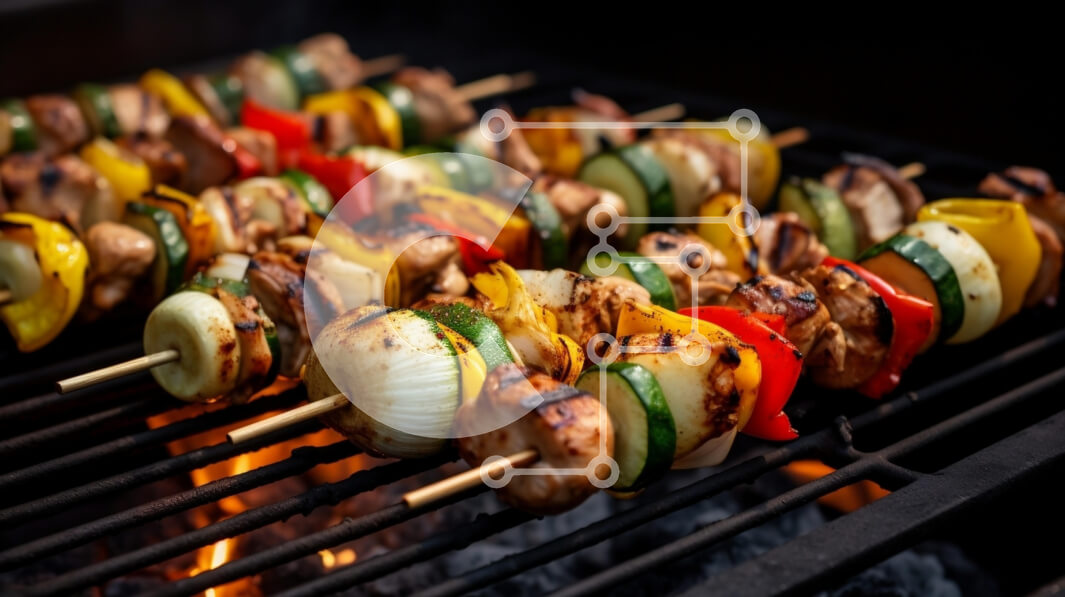 Intra Συλλεκτικό Ξύλινο Παζλ Plywood 4mm - Ψητά σουβλάκια λαχανικών και κοτόπουλου στη σχάρα μπάρμπεκιου Σε Ξύλινο Κουτί - Διαστάσεις: 10x10 cm – 25 κομμάτια