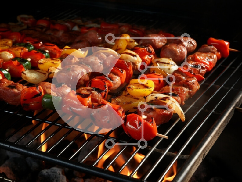 Intra Συλλεκτικό Ξύλινο Παζλ Plywood 4mm - Ψητά σουβλάκια κοτόπουλου και λαχανικών σε σχάρα μπάρμπεκιου Σε Ξύλινο Κουτί - Διαστάσεις: 10x10 cm – 25 κομμάτια