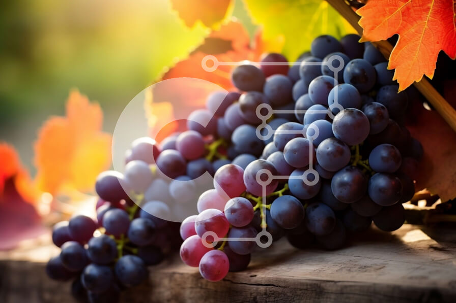 Intra Συλλεκτικό Ξύλινο Παζλ Plywood 4mm - Ώριμα μοβ σταφύλια σε ένα κλήμα σε έναν καταπράσινο αμπελώνα Σε Ξύλινο Κουτί - Διαστάσεις: 10x10 cm – 25 κομμάτια