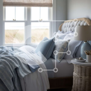 Intra Συλλεκτικό Ξύλινο Παζλ Plywood 4mm - Υπνοδωμάτιο με θέα στον Ωκεανό με μεγάλο κρεβάτι και κομοδίνο Σε Ξύλινο Κουτί - Διαστάσεις Puzzle: 10x10 cm – 25 κομμάτια