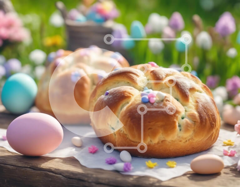 Intra Συλλεκτικό Ξύλινο Παζλ Plywood 4mm - Ψωμάκια και αυγά με θέμα το Πάσχα σε ένα ξύλινο τραπέζι με λουλούδια Σε Ξύλινο Κουτί - Διαστάσεις: 10x10 cm – 25 κομμάτια