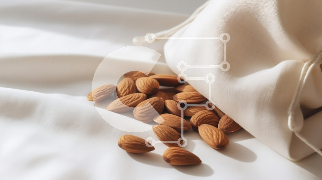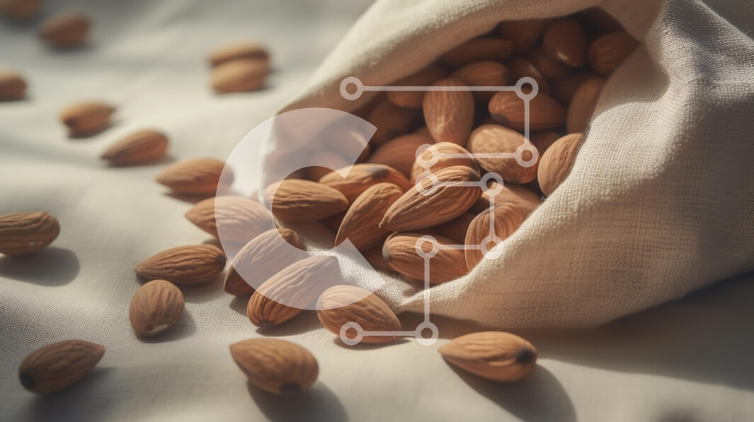 Intra Συλλεκτικό Ξύλινο Παζλ Plywood 4mm - Ωμά αμύγδαλα σε λευκό ύφασμα Σε Ξύλινο Κουτί - Διαστάσεις: 10x10 cm – 25 κομμάτια