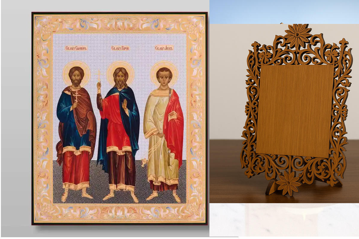 Εικόνα Ορθοδοξίας Δαντέλα μαζι με Βάση σε 8 χρώματα με περίγραμμα χρυσό σε ξύλο Plywood (Πλακάζ) με βάση Μάρτυρες Gury Samon και Aviv, Χειροποίητη Ελληνορθόδοξη , Κρεμαστή πλάκα βυζαντινής τέχνης, χριστιανική τέχνη Διάσταση 15x11 cm (5,9 x 4,3 ίντσες) INTRAEKkadro3211-2762