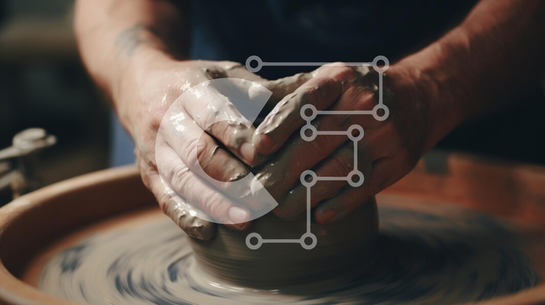 Intra Συλλεκτικό Ξύλινο Παζλ Plywood 4mm - Χέρια που σχηματίζουν πηλό σε ρόδα κεραμικής Σε Ξύλινο Κουτί - Διαστάσεις Puzzle: 10x10 cm – 25 κομμάτια