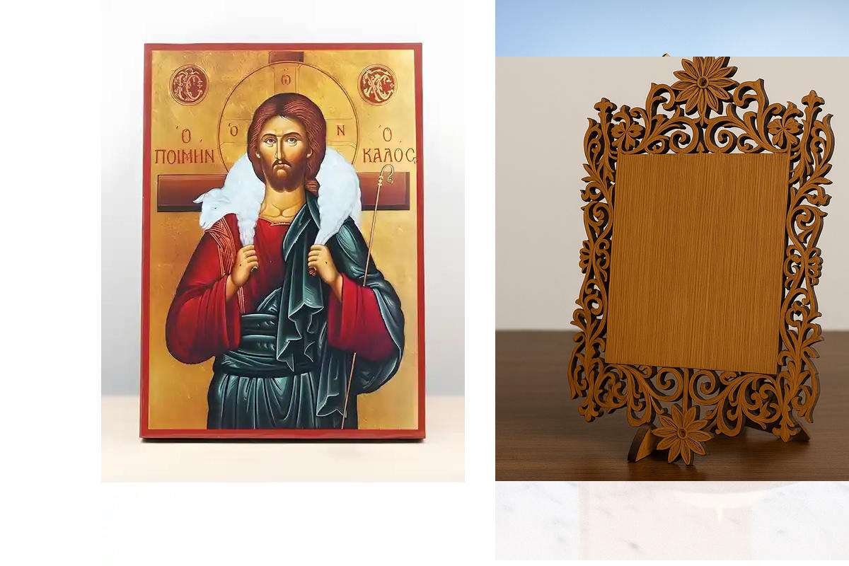Εικόνα Ορθοδοξίας Δαντέλα μαζι με Βάση σε 8 χρώματα με περίγραμμα χρυσό σε ξύλο Plywood (Πλακάζ) με βάση Ιησούς Χριστός ο καλός Ποιμένας, Ξύλινη Χειροποίητη Εικόνα Ελληνικού Premium Βυζαντινού Στυλ Κρεμασμένο σε ξύλινη πλάκα Θρησκευτικό θέμα Χειροποίητη Ελληνορθόδοξη εικόνα του Ιησού Χριστού, Κρεμαστή πλάκα βυζαντινής τέχνης, χριστιανική τέχνη 45x35 cm (17,7 x 13,8 ίντσες) INTRAEKkadro3211-342111077