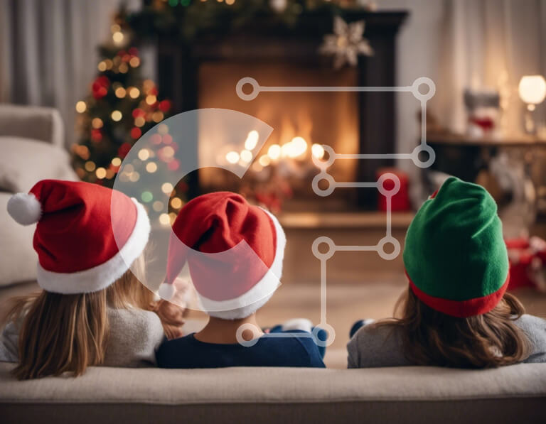 Intra Συλλεκτικό Ξύλινο Παζλ Plywood 4mm - Τρία παιδιά με καπέλα Άγιου Βασίλη δίπλα στο τζάκι Σε Ξύλινο Κουτί - Διαστάσεις: 10x10 cm – 25 κομμάτια