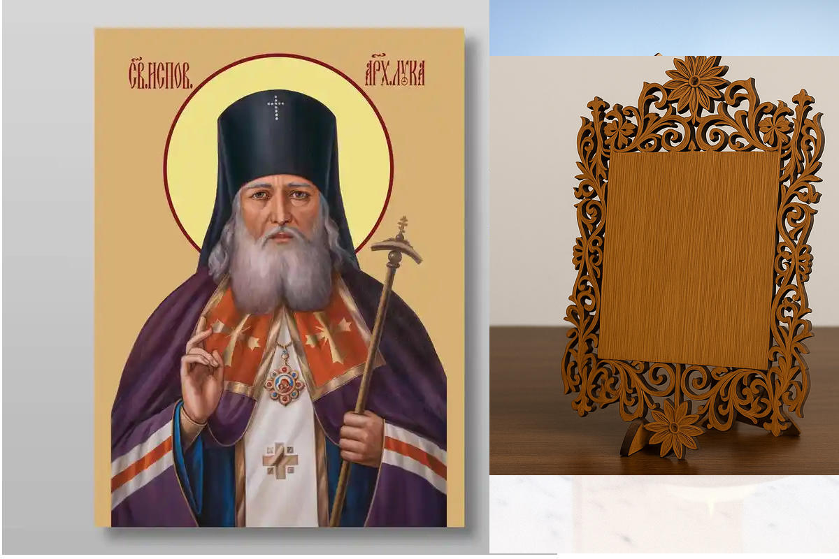 Εικόνα Ορθοδοξίας Δαντέλα μαζι με Βάση σε 8 χρώματα με περίγραμμα χρυσό σε ξύλο Plywood (Πλακάζ) με βάση Άγιος Λούκα (Βοινό-Γιασενέτσκι), Χειροποίητη Ελληνορθόδοξη , Κρεμαστή πλάκα βυζαντινής τέχνης, χριστιανική τέχνη Διάσταση 26x20 cm (10,2 x 7,9 ίντσες) INTRAEKkadro3211-4321288