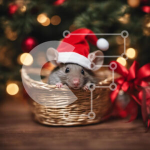 Intra Συλλεκτικό Ξύλινο Παζλ Plywood 4mm - Χαριτωμένος αρουραίος με καπέλο Άγιου Βασίλη σε εορταστική σκηνή διακοπών Σε Ξύλινο Κουτί - Διαστάσεις: 10x10 cm – 25 κομμάτια