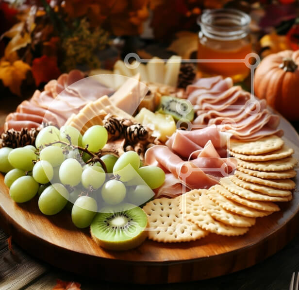 Intra Συλλεκτικό Ξύλινο Παζλ Plywood 4mm - Φθινοπωρινός πίνακας αλλαντικών με φρούτα και κρέατα Σε Ξύλινο Κουτί - Διαστάσεις: 10x10 cm – 25 κομμάτια