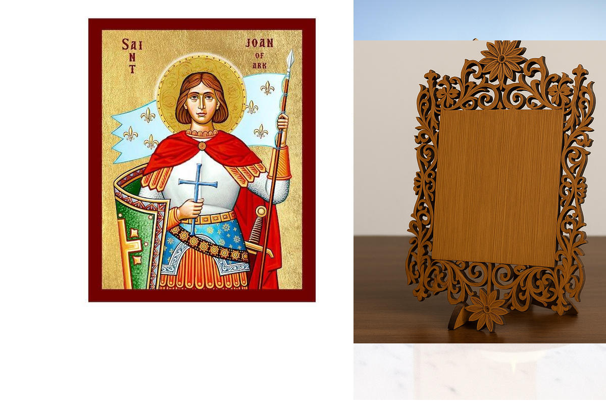 Εικόνα Ορθοδοξίας Δαντέλα μαζι με Βάση σε 8 χρώματα με περίγραμμα χρυσό σε ξύλο Plywood (Πλακάζ) με βάση Εικόνα της Αγίας Ιωάννας της Αρκίας, Χειροποίητη Θρησκευτική Εικόνα της Αγίας Ιωάννας της Αρκίας, Κρεμαστή πλάκα Βυζαντινής Τέχνης, Χριστιανική Θρησκευτική Τέχνη Διάσταση 10x7 cm (3,9 x 2,8 ίντσες) INTRAEKkadro3211-816723719
