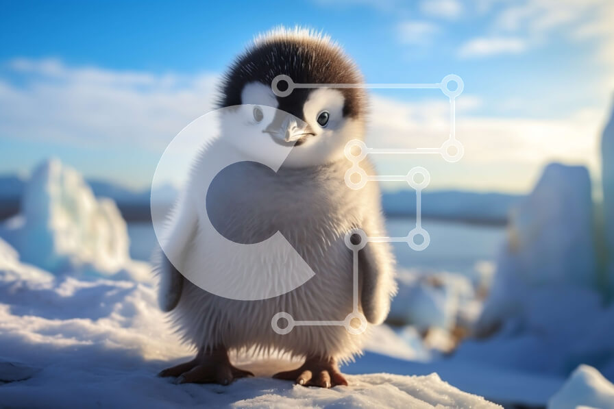 Intra Συλλεκτικό Ξύλινο Παζλ Plywood 4mm - Χαριτωμένος πιγκουίνος σε χιονισμένη επιφάνεια με παγόβουνα στο φόντο Σε Ξύλινο Κουτί - Διαστάσεις: 10x10 cm – 25 κομμάτια