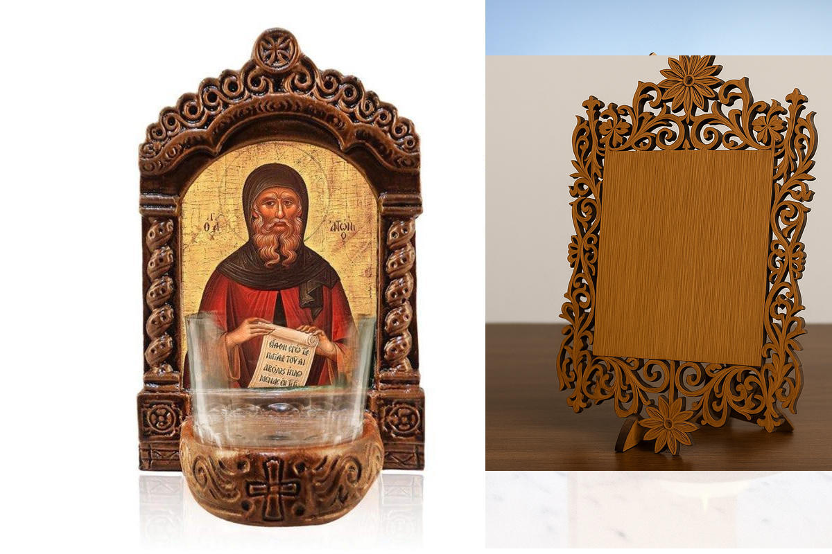 Εικόνα Ορθοδοξίας Δαντέλα μαζι με Βάση σε 8 χρώματα με περίγραμμα χρυσό σε ξύλο Plywood (Πλακάζ) με βάση Φωτιστικό Αγρυπνού Αγίου Γρηγορίου, Επιτραπέζιο Φωτιστικό Αγρυπνίας Αγίου Γρηγορίου, Ελληνικής κατασκευής Επιτραπέζιο Φωτιστικό, Χειροποίητο Κεραμικό Φωτιστικό με Γυάλινο Κύπελλο Διάσταση 10x7 cm (3,9 x 2,8 ίντσες) INTRAEKkadro3211-816723905