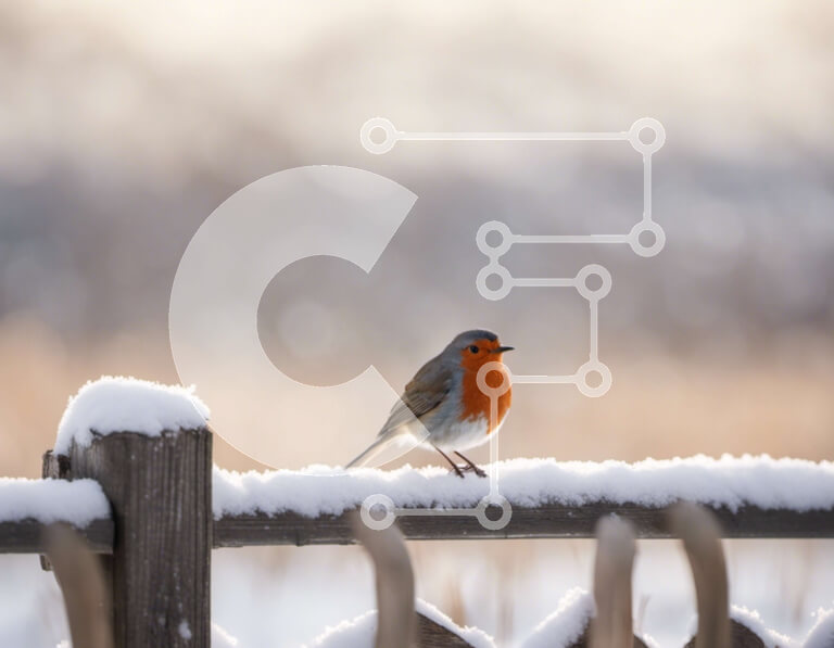 Intra Συλλεκτικό Ξύλινο Παζλ Plywood 4mm - Χειμερινή σκηνή με ένα μικρό πουλί σκαρφαλωμένο σε έναν χιονισμένο φράκτη Σε Ξύλινο Κουτί - Διαστάσεις: 10x10 cm – 25 κομμάτια