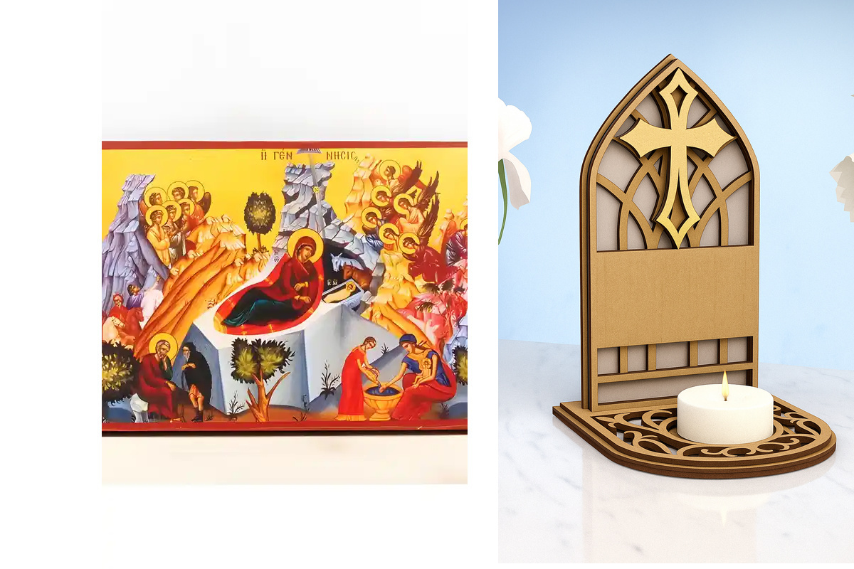 Εικόνα Ορθοδοξίας Καντηλάκι σε 8 χρώματα με περίγραμμα χρυσό σε ξύλο Plywood (Πλακάζ) με βάση Γένεση του Ιησού Χριστού, Ξύλινη Χειροποίητη Κατακόρυφη Εικόνα Ελληνικού Premium Βυζαντινού Στυλ Κρεμασμένο σε ξύλινη πλάκα Ορθόδοξο Θρησκευτικό Θέμα Χειροποίητη Ελληνορθόδοξη εικόνα του Ιησού Χριστού, Κρεμαστή πλάκα βυζαντινής τέχνης, χριστιανική τέχνη Διάσταση 26x20 cm (10,2 x 7,9 ίντσες) INTRAEKkadro1-22611117