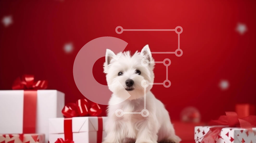 Intra Συλλεκτικό Ξύλινο Παζλ Plywood 4mm - Χαριτωμένο σκυλί τεριέ West Highland με κόκκινα κουτιά δώρων Σε Ξύλινο Κουτί - Διαστάσεις: 10x10 cm – 25 κομμάτια