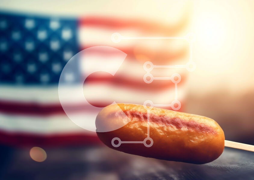 Intra Συλλεκτικό Ξύλινο Παζλ Plywood 4mm - Χοτ ντογκ τυλιγμένο με μπέικον με αμερικανική σημαία Σε Ξύλινο Κουτί - Διαστάσεις: 10x10 cm – 25 κομμάτια