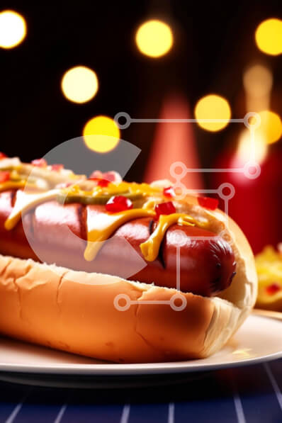 Intra Συλλεκτικό Ξύλινο Παζλ Plywood 4mm - Χοτ ντογκ με μουστάρδα και κέτσαπ σε χαρτί με φώτα νέον Σε Ξύλινο Κουτί - Διαστάσεις: 10x10 cm – 25 κομμάτια