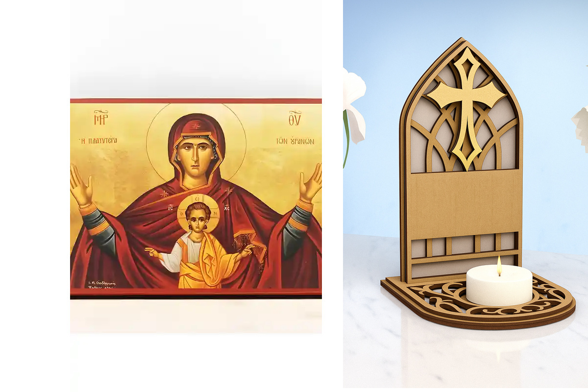 Εικόνα Ορθοδοξίας Καντηλάκι σε 8 χρώματα με περίγραμμα χρυσό σε ξύλο Plywood (Πλακάζ) με βάση Παναγία Πιο ευρύχωρη και από τους ουρανούς «Πλατυτέρα», Ξύλινη Χειροποίητη Εικόνα Ελληνικού Premium Βυζαντινού Στυλ Κρεμασμένο σε ξύλινη πλάκα Χειροποίητη Ελληνορθόδοξη εικόνα του Ιησού Χριστού, Κρεμαστή πλάκα βυζαντινής τέχνης, χριστιανική τέχνη Διάσταση 15x11 cm (5,9 x 4,3 ίντσες) INTRAEKkadro1-611080