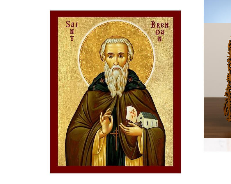 Εικόνα Ορθοδοξίας Δαντέλα μαζι με Βάση σε 8 χρώματα με περίγραμμα χρυσό σε ξύλο Plywood (Πλακάζ) με βάση Εικόνα Αγίου Μπρένταν του Πλοηγού, Χειροποίητη Χριστιανική Εικόνα του Αγίου Μπρένταν, Πλακέτα Βυζαντινής Τέχνης, Χριστιανική Θρησκευτική Τέχνη Διάσταση 26x20 cm (10,2 x 7,9 ίντσες) INTRAEKkadro3211-3216723726