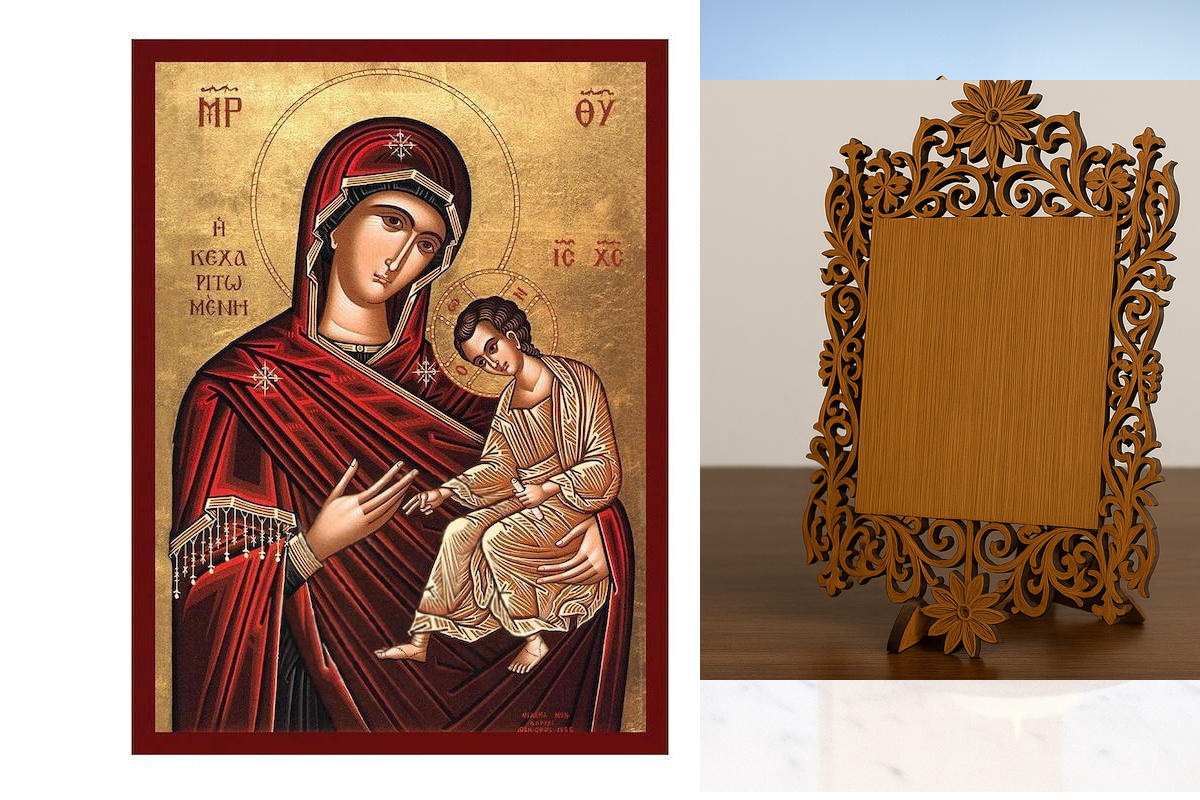 Εικόνα Ορθοδοξίας Δαντέλα μαζι με Βάση σε 8 χρώματα με περίγραμμα χρυσό σε ξύλο Plywood (Πλακάζ) με βάση Παναγία Γεμάτη Χάρη εικόνα, Χειροποίητη Βυζαντινή εικόνα Παναγίας Κεχαριτωμένης, Πλακέτα θρησκευτικής τέχνης, Χριστιανικό δώρο Διάσταση 50x40 cm (19,7 x 15,8 ίντσες) INTRAEKkadro3211-6543216723723