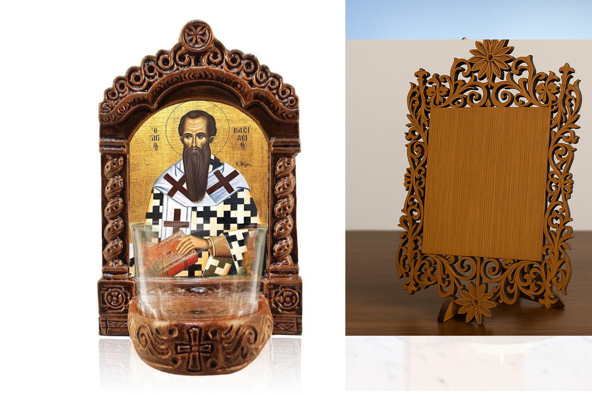 Εικόνα Ορθοδοξίας Δαντέλα μαζι με Βάση σε 8 χρώματα με περίγραμμα χρυσό σε ξύλο Plywood (Πλακάζ) με βάση Φωτιστικό Αγρυπνίας Αγίου Βασιλείου, Χειροποίητη επιτραπέζια εικόνα Αγίου Βασιλείου, Ελληνικής κατασκευής Κεραμικό Φωτιστικό με Γυάλινο Κύπελλο Διάσταση 21x15 cm (8,3 x 5,9 ίντσες) INTRAEKkadro3211-216723908