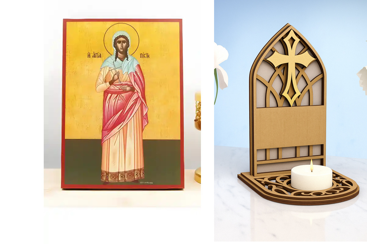Εικόνα Ορθοδοξίας Καντηλάκι σε 8 χρώματα με περίγραμμα χρυσό σε ξύλο Plywood (Πλακάζ) με βάση Saints “Pisti” Faith, Ξύλινη Χειροποίητη Εικόνα Ελληνικού Premium Βυζαντινού Στυλ Κρεμαστή σε ξύλινη πλάκα Χειροποίητη Ελληνορθόδοξη εικόνα του Ιησού Χριστού, Κρεμαστή πλάκα βυζαντινής τέχνης, χριστιανική τέχνη Διάσταση 10x7 cm (3,9 x 2,8 ίντσες) INTRAEKkadro1-11132