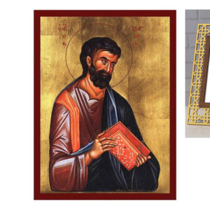 Εικόνα Ορθοδοξίας με περίγραμμα χρυσό σε ξύλο Φλαμουρίας με βάση Εικόνα Αγίου Μάρκου του Ευαγγελιστή, Χειροποίητη Βυζαντινή εικόνα του Αγίου Μάρκου, Κρεμαστή πλάκα θρησκευτικής τέχνης, χριστιανικό δώρο Διάσταση 40x30 cm (15,8 x 11,8 ίντσες)INTRAEK-43216723708