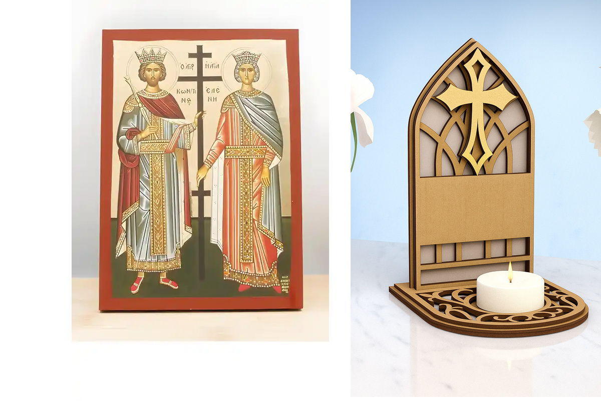 Εικόνα Ορθοδοξίας Καντηλάκι σε 8 χρώματα με περίγραμμα χρυσό σε ξύλο Plywood (Πλακάζ) με βάση Άγιος Κωνσταντίνος και Αγία Ελένη, Ξύλινη Χειροποίητη Εικόνα με Ψηφιακή Εκτύπωση Ελληνικό Premium Βυζαντινού Στυλ Κρεμαστό τοίχου Θρησκευτικό Θέμα Χειροποίητη Ελληνορθόδοξη εικόνα του Ιησού Χριστού, Κρεμαστή πλάκα βυζαντινής τέχνης, χριστιανική τέχνη Διάσταση 15x11 cm (5,9 x 4,3 ίντσες) INTRAEKkadro1-610922