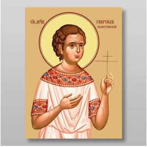Εικόνα Ορθοδοξίας με περίγραμμα χρυσό σε ξύλο Φλαμουρίας με βάση Gabriel Martyr of Bialystok, Χειροποίητη Ελληνορθόδοξη , Κρεμαστή πλάκα βυζαντινής τέχνης, χριστιανική τέχνη Διάσταση 10x7 cm (3,9 x 2,8 ίντσες) INTRAEK-71014