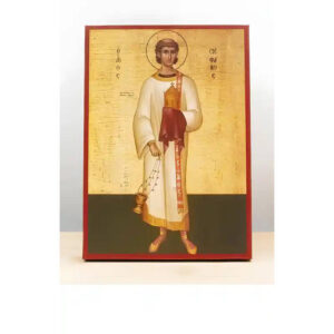 Εικόνα Ορθοδοξίας με περίγραμμα χρυσό σε ξύλο Φλαμουρίας με βάση Άγιος Στέφανος ο Πρωτομάρτυς, Ξύλινη Χειροποίητη Εικόνα Ελληνικού Βυζαντινού Στυλ Κρεμαστή σε ξύλινη πλάκα Θρησκευτικό θέμα Χειροποίητη Ελληνορθόδοξη εικόνα του Ιησού Χριστού, Κρεμαστή πλάκα βυζαντινής τέχνης, χριστιανική τέχνη 45x35 cm (17,7 x 13,8 ίντσες) INTRAEK-342111055