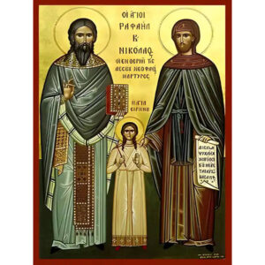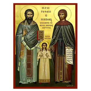 Εικόνα Ορθοδοξίας με περίγραμμα χρυσό σε ξύλο Φλαμουρίας με βάση Εικόνα ΑΓΙΟΙ ΡΑΦΑΗΛ, ΝΙΚΟΛΑΟΣ ΚΑΙ ΕΙΡΗΝΗ, ΝΕΟΜΑΡΤΥΡΕΣ ΜΥΤΙΛΗΝΗΣ, ΟΛΟΣΩΜΟΙ Χειροποίητη Ελληνορθόδοξη εικόνα του Ιησού Χριστού, Κρεμαστή πλάκα βυζαντινής τέχνης, χριστιανική τέχνη Διάσταση 40x30 cm (10,2x7,9 ίντσες) INTRAEK-1447757865145