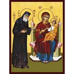Εικόνα Ορθοδοξίας με περίγραμμα χρυσό σε ξύλο Φλαμουρίας με βάση Εικόνα ΑΓΙΟΣ ΠΑΙΣΙΟΣ ΑΓΙΟΡΕΙΤΗΣ, ΔΕΟΜΕΝΟΣ ΠΡΟΣ ΤΗΝ ΠΑΝΑΓΙΑ ΚΑΙ ΤΟΝ ΚΥΡΙΟ, ΟΛΟΣΩΜΟΣ Χειροποίητη Ελληνορθόδοξη εικόνα του Ιησού Χριστού, Κρεμαστή πλάκα βυζαντινής τέχνης, χριστιανική τέχνη Διάσταση 15x11 cm (5,9x4,3 ίντσες) INTRAEK-337757864647