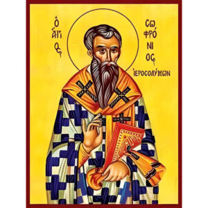Εικόνα Ορθοδοξίας με περίγραμμα χρυσό σε ξύλο Φλαμουρίας με βάση Εικόνα ΑΓΙΟΣ ΣΩΦΡΟΝΙΟΣ, ΑΡΧΙΕΠΙΣΚΟΠΟΣ ΙΕΡΟΣΟΛΥΜΩΝ Χειροποίητη Ελληνορθόδοξη εικόνα του Ιησού Χριστού, Κρεμαστή πλάκα βυζαντινής τέχνης, χριστιανική τέχνη Διάσταση 15x11 cm (5,9x4,3 ίντσες) INTRAEK-337757864561