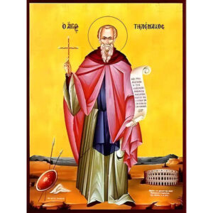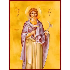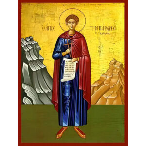 Εικόνα Ορθοδοξίας με περίγραμμα χρυσό σε ξύλο Φλαμουρίας με βάση Εικόνα ΑΓΙΟΣ ΤΡΙΑΝΤΑΦΥΛΛΟΣ, ΝΕΟΜΑΡΤΥΣ, ΕΚ ΖΑΓΟΡΑΣ ΠΗΛΙΟΥ, ΟΛΟΣΩΜΟΣ Χειροποίητη Ελληνορθόδοξη εικόνα του Ιησού Χριστού, Κρεμαστή πλάκα βυζαντινής τέχνης, χριστιανική τέχνη Διάσταση 15x11 cm (5,9x4,3 ίντσες) INTRAEK-337757864559