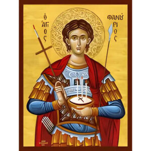 Εικόνα Ορθοδοξίας με περίγραμμα χρυσό σε ξύλο Φλαμουρίας με βάση Εικόνα ΑΓΙΟΣ ΦΑΝΟΥΡΙΟΣ, Ο ΜΕΓΑΛΟΜΑΡΤΥΣ, ΟΛΟΣΩΜΟΣ Χειροποίητη Ελληνορθόδοξη εικόνα του Ιησού Χριστού, Κρεμαστή πλάκα βυζαντινής τέχνης, χριστιανική τέχνη Διάσταση 15x11 cm (5,9x4,3 ίντσες) INTRAEK-337757864548