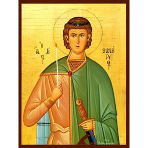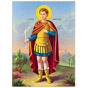 Εικόνα Ορθοδοξίας με περίγραμμα χρυσό σε ξύλο Φλαμουρίας με βάση Εικόνα ΑΓΙΟΣ ΦΑΝΟΥΡΙΟΣ, Ο ΜΕΓΑΛΟΜΑΡΤΥΣ, ΟΛΟΣΩΜΟΣ Χειροποίητη Ελληνορθόδοξη εικόνα του Ιησού Χριστού, Κρεμαστή πλάκα βυζαντινής τέχνης, χριστιανική τέχνη Διάσταση 15x11 cm (5,9x4,3 ίντσες) INTRAEK-337757863754