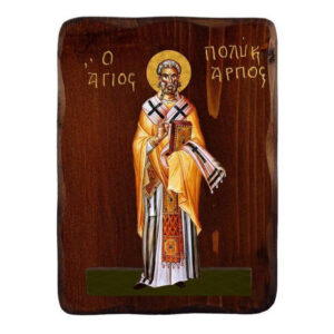 Εικόνα Ορθοδοξίας με περίγραμμα χρυσό σε ξύλο Φλαμουρίας με βάση Εικόνα Αγίου Πολυκάρπου, Χειροποίητη ελληνορθόδοξη εικόνα του Αγίου Πολυκάρπου, επιτοίχια πλάκα βυζαντινής τέχνης, θρησκευτικό δώρο, χριστιανική διακόσμηση Διάσταση 40x30 cm (15,8 x 11,8 ίντσες)INTRAEK-43216723952