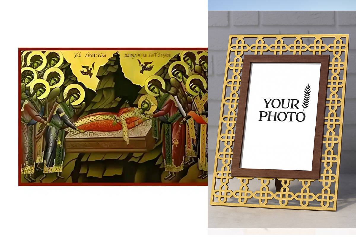 Εικόνα Ορθοδοξίας Πολυτελείας με σχεδιο Σταυρούς μαζι με Βάση σε 8 χρώματα με περίγραμμα χρυσό σε ξύλο Plywood (Πλακάζ) με βάση Εικόνα Αγία Αικατερίνη, Κηδευομενη υπο των Αγγέλων Χειροποίητη Ελληνορθόδοξη , Κρεμαστή πλάκα βυζαντινής τέχνης, χριστιανική τέχνη Διάσταση 10x7 cm (3,9 x 2,8 ίντσες) INTRAEK3kadro3211-670700