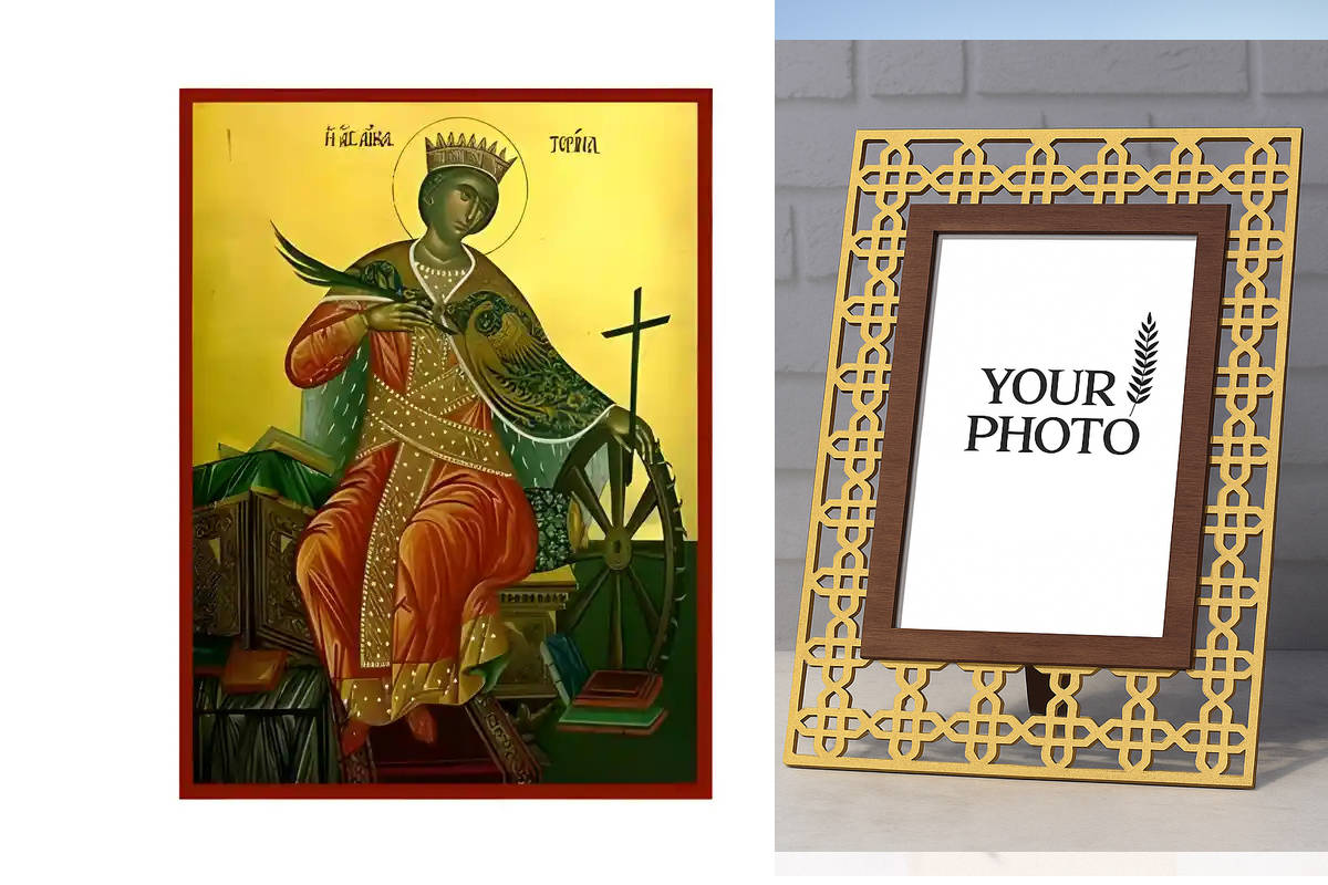Εικόνα Ορθοδοξίας Πολυτελείας με σχεδιο Σταυρούς μαζι με Βάση σε 8 χρώματα με περίγραμμα χρυσό σε ξύλο Plywood (Πλακάζ) με βάση Εικόνα Αγία Αικατερίνη Χειροποίητη Ελληνορθόδοξη , Κρεμαστή πλάκα βυζαντινής τέχνης, χριστιανική τέχνη Διάσταση 10x7 cm (3,9 x 2,8 ίντσες) INTRAEK3kadro3211-670705