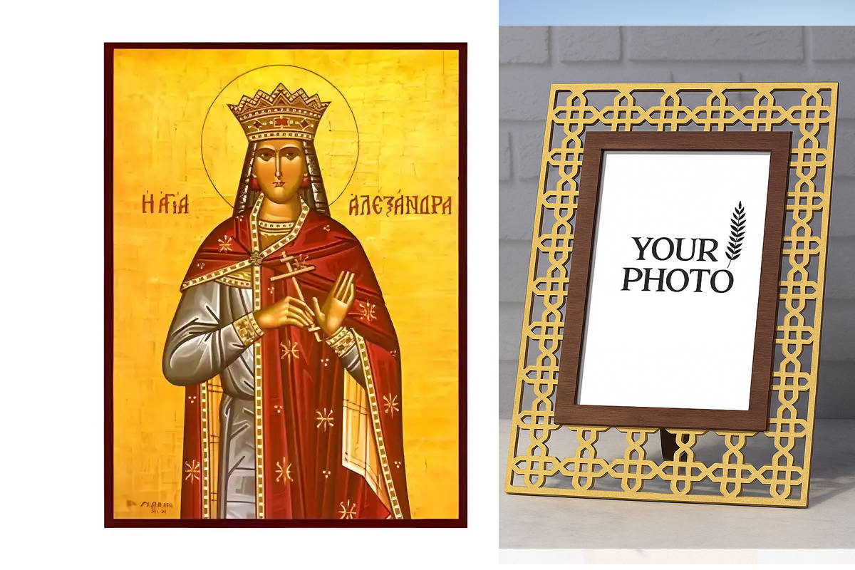 Εικόνα Ορθοδοξίας Πολυτελείας με σχεδιο Σταυρούς μαζι με Βάση σε 8 χρώματα με περίγραμμα χρυσό σε ξύλο Plywood (Πλακάζ) με βάση Εικόνα Αγία Αλεξάνδρα Χειροποίητη Ελληνορθόδοξη , Κρεμαστή πλάκα βυζαντινής τέχνης, χριστιανική τέχνη Διάσταση 10x7 cm (3,9 x 2,8 ίντσες) INTRAEK3kadro3211-670696